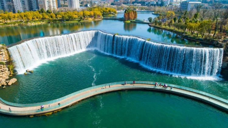 2026年是丙午马年,象征着奔腾、进取与活力。新赛季揭幕战选址昆明瀑布公园——这里是亚洲最大的人工瀑布,两江广场毗邻盘龙江与金汁河,水势磅礴,与篮球赛场的热血激情相得益彰。